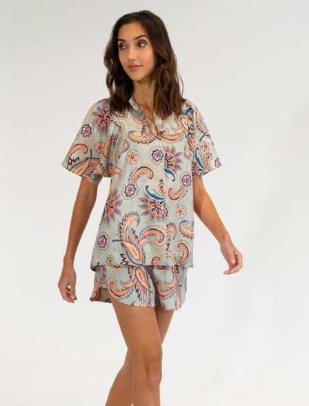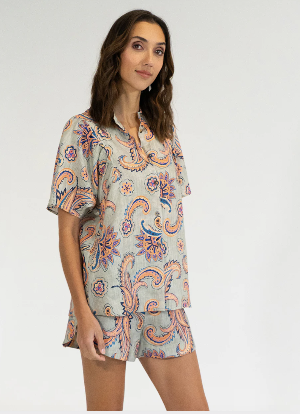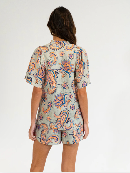 The Ticino Blouse is effortlessly feminine and universally flattering. Its relaxed, off-body fit drapes beautifully, while a classic collar stand and button-through pop-over design offer timeless tailoring. Dropped armholes with flutter sleeves add a soft, airy touch, making it perfect with tailored pants for polished styling or denim for a casual look.