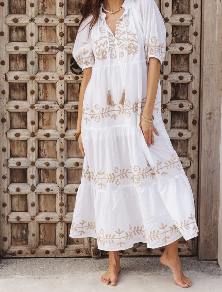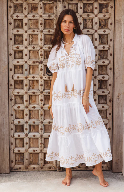 Fresh, luminous, and endlessly versatile, the Julia Dress in White captures the spirit of spring and summer dressing. Made from airy cotton, it features the same flowing tiered silhouette and exquisite embroidery that elevates the everyday into something truly special.