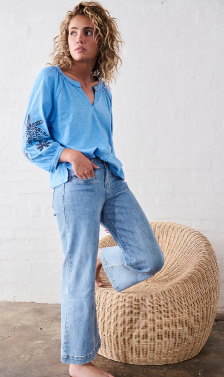 Channel chic 70’s style. A modern twist on the classic wide-legged jean, the Freya Jean features a mid/high rise that’s fitted at the hips with a relaxed, wide leg that flares at the knee. Works so well with one of our classic cotton tees and a pair of boots or sandals.