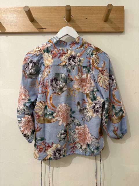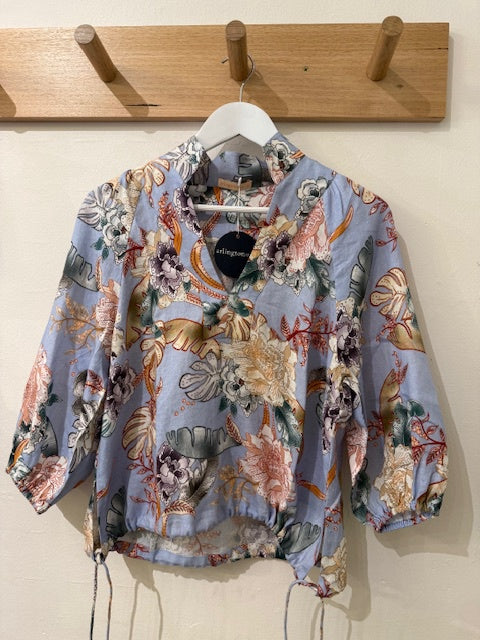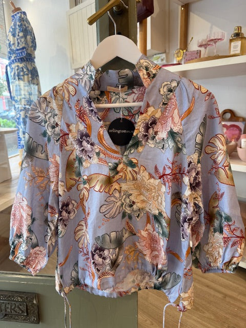 The Roxy top by Arlington Milne. Effortlessly elegant and is a timeless top designed for versatility and ease. This pop-over style features a deep V-neckline. The raglan sleeves, finished with subtle gathering and elastic cuffs, create soft volume and a relaxed silhouette. Perfect for both casual days and elevated evenings, it is a go-to blouse for effortless sophistication.