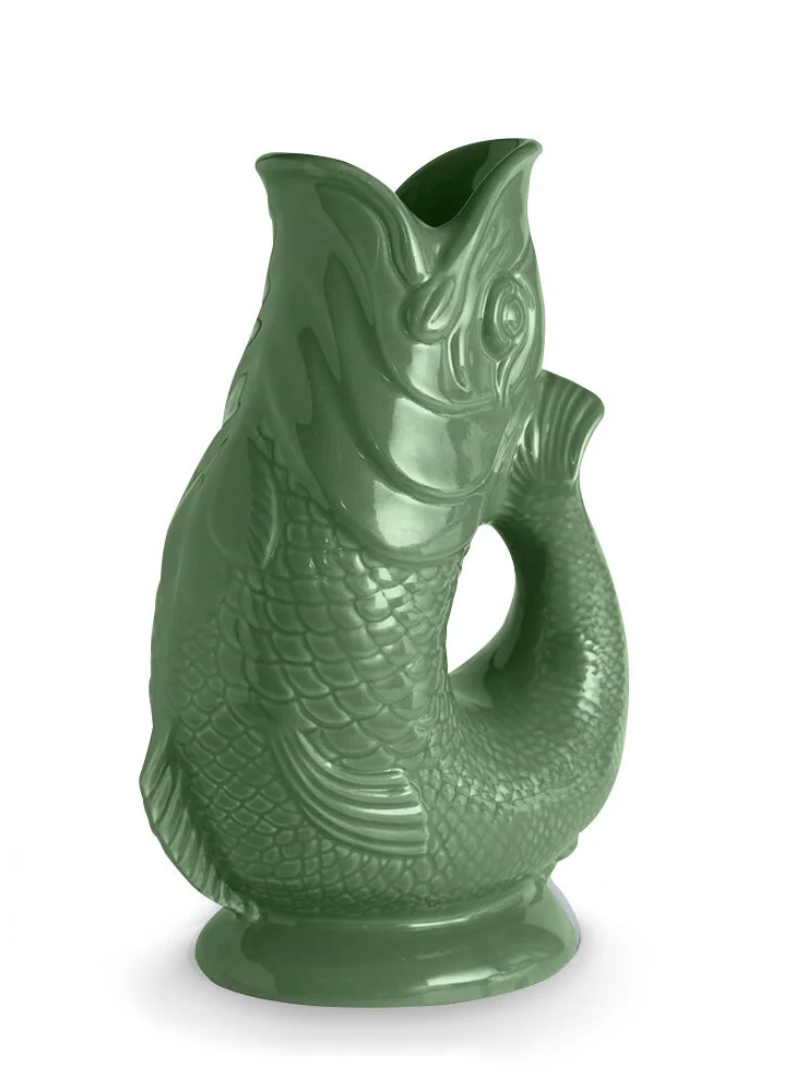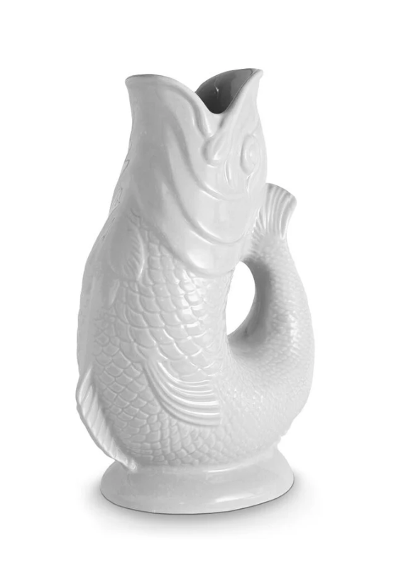 Add a touch of UK Heritage design to your home with this 1.2 L Fish Jug from Wade. Created using the original Wade design that has stood the test of time for over 150 years, this jug is the perfect statement piece for any home. Handcrafted in the heart of the Potteries industry using English Earthenware it showcases and celebrates exceptional craftmanship. The 1.2L capacity means you can use it as a water jug or wine carafe at family mealtimes or social gatherings, whilst it is also ideal as an ornament, vase or table centrepiece, it just oozes style. The unique glugging sound has long been a hallmark for the jug and it will produce the sound when pouring the jug if it is at least three quarters full. Formed in the shape of a fish, the mouth perfectly lines up to create an easy pour spout, whilst the tail curves up to create an ergonomic handle with a comfortable grip. It is the perfect gift for any Heritage brand lover and would be great for weddings, birthdays and housewarming parties.