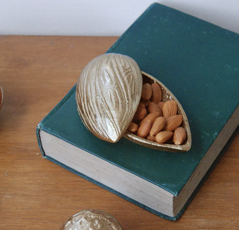 Add a touch of whimsy and functional style to your home with this gold almond bowl—a sculptural trinket dish perfect for holding jewellery, keys, coins, or small snacks. Designed with a beautifully textured shell that mirrors the look of a real almond, this metallic storage piece adds charm and character to any room. Its warm gold finish enhances modern, eclectic, and nature-inspired interiors, making it ideal for shoppers searching for unique home décor, gold accent pieces, or novelty storage dishes.